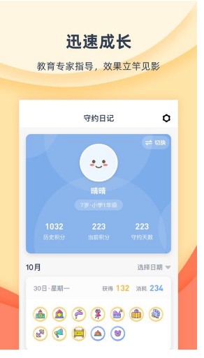 小约定app是一款帮助小朋友养成好习惯的手机App,小约定app通过家庭互动的方式记录家庭约定协议,通过小约定app可以帮助增添家庭互动,有效的帮助家庭成员养成好习惯。软件平台各种智能辅助项目有效的帮助家长提高教育学习效率。平台应用积分制的形式帮助孩子培养良好生活学习习惯,明辨是非,改掉不好的陋习,正确的完成目标获得积分,做错事情表现不好时,家长就可以减掉积分,提醒孩子以后要注意避免。这样有效的慢慢让孩子身体本能的记住优秀的准则。