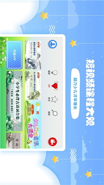 所有课程均可随时将视频切换成音频,孩子可以随时随地自由学习。看视频可以看到文字,听音频可以增强记忆。送孩子上学路上,晚上睡觉前,都可以听听学学,潜移默化提升孩子文化底蕴,为孩子成长做足文化准备。