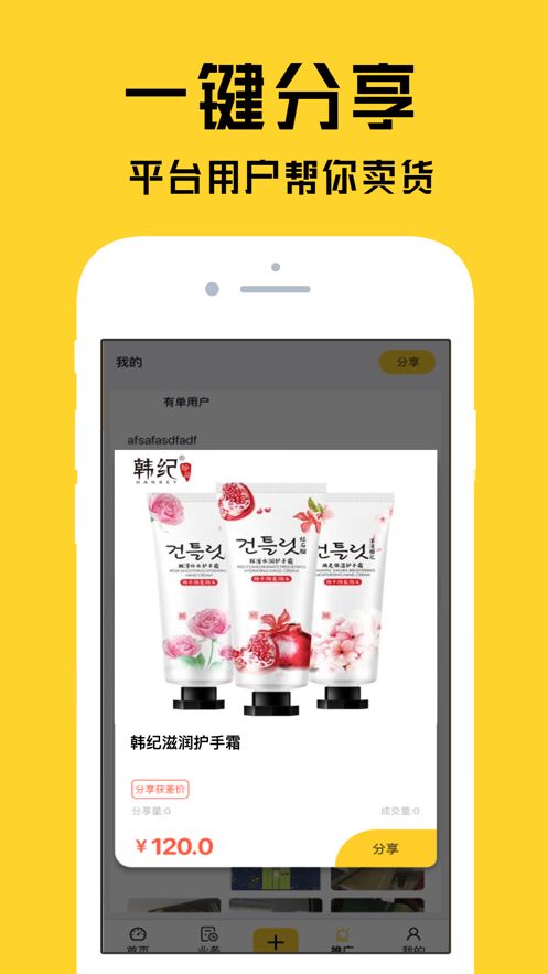 2、简单易操作的流程,快速创建订单,一键分享,平台的用户分享帮忙卖货。