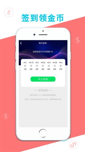 5、每日签到领取现金奖励,收入提现,让你嗨翻天。
