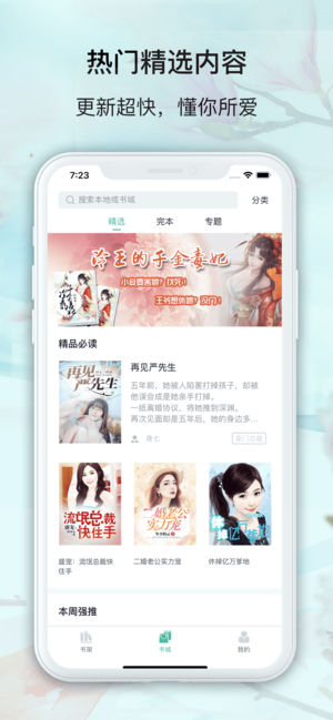 西亭书城APP简介:是一款专为女性朋友打造的小说阅读软件,精选的小说类型很是丰富,很多女孩子们爱看的资源是应有尽有,每天还会经常更新,不会让你书荒哦,喜欢追书的朋友们千万不要错过了哦!这里的正版书籍你想看就看,再也不需要因为找到不好看的书而发愁了,平台还为为你推荐比较火的书籍哦,你快来抢先看吧,阅读更有趣更好玩,还可以打造你们的阅读圈。用户可以在这里搜索自己喜爱的小说,该软件拥有各种类型小说,感兴趣的小伙伴们快来下载使用吧!