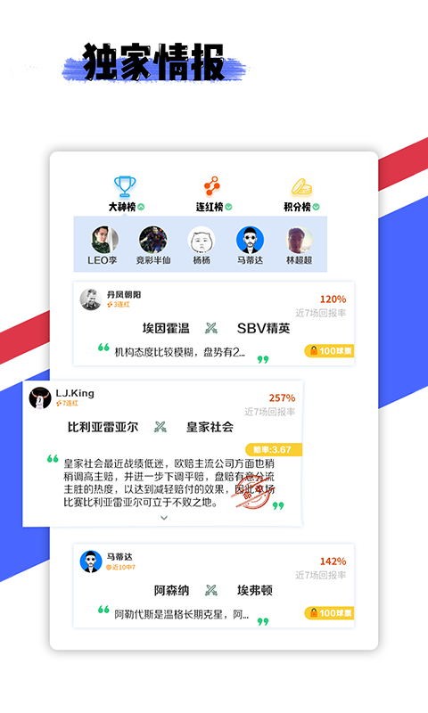 4.足球情报:专家分析,把握赛事动向;不服专家,还可以反对,让自己成为专家。