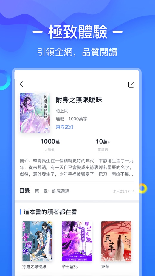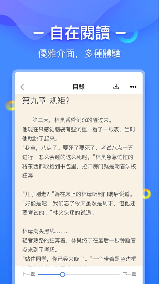 【优质体验】翻页流畅,排版精美,多种背景字体任意切换,带你畅享极致的阅读体验.