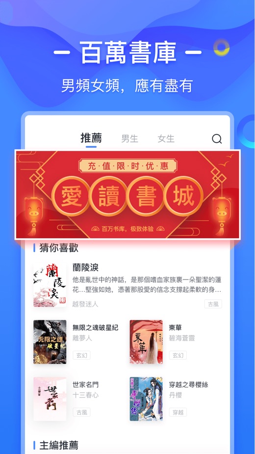 4、不管是玄幻、武侠、都市,还是女生喜欢的穿越、总裁、校园类型的这里都有。