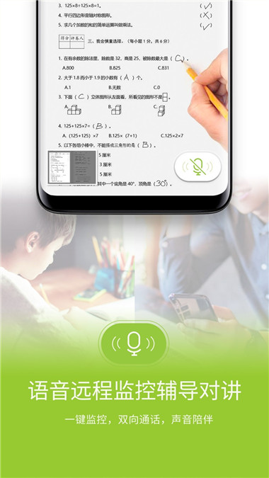 2.支持远程语音监控辅导,不在身边也能实时辅导学习,不影响学习进度,一键监控双向通话。