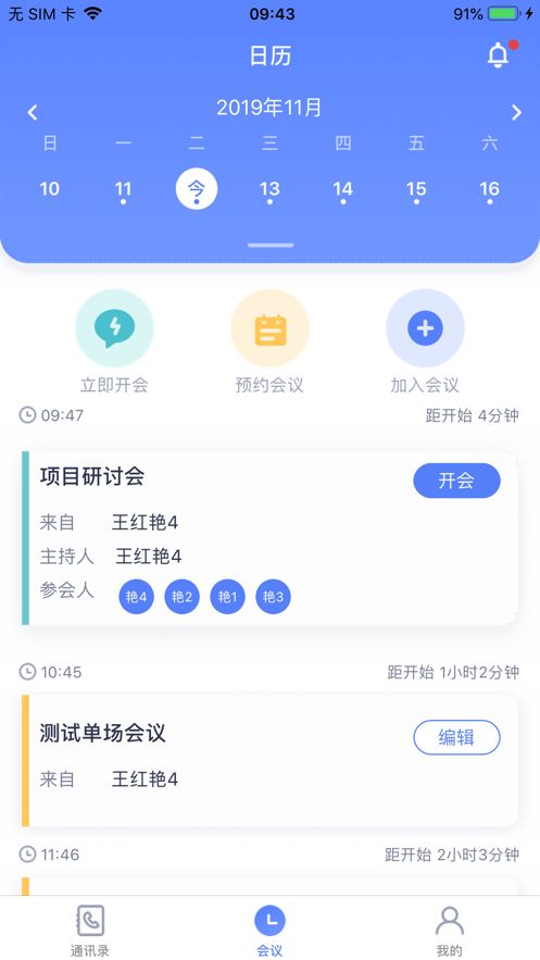 2.每个人能够获得一个线上的通讯录,在通讯之中可以批量选中与会人参加会议;