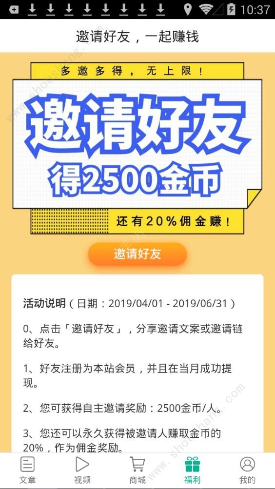 3、自己看的视频越多,能够得到的收益也就会越多的啦,而且邀请自己的好友一起来看资讯也是有钱赚的呢。