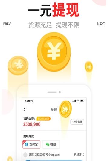 3.在线赚的钱,随时都可以提现到账,支持多账户提现到账哦。
