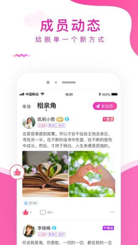 4、随时随地分享自己的热门动态,让单身异性及时看到你的精彩瞬间,让缘分即刻发生。