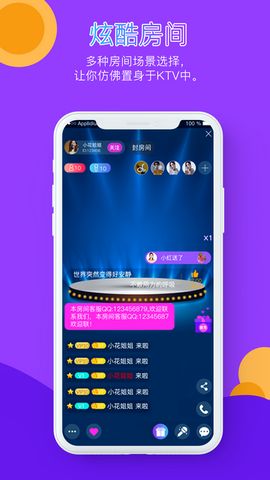 2.支持扮演虚拟角色,提供各种炫酷的房间,让你唱歌也超带感,十分好玩。