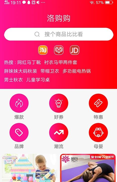 洛购购app:这是一个让大家可以更省钱去网购的商城,在这里你会更快的搜索到你需要的商品优惠券,各种优惠券直接叠加使用都是可以的,而且优惠券的更新速度也是非常快的,每天都能领取到不同的优惠券!线上汇集了女运动套装春秋版,网红马丁靴,衬衣马甲俩件套,胖妹妹大码秋装,带帽卫衣,多功能电热锅,男士秋衣,儿童学习桌等等诸多热门实用商品。是时候为消费者带来折扣价,最低价,特惠价,快来一起赶上购物的潮流吧!