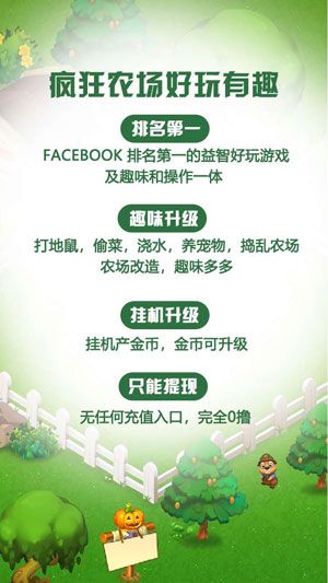 农场style红包版是一款全新的大家都钟爱的很有趣的手机网赚软件。在这里有数不清的各类不断在更新的额任务,而且任务设计的范围也广。平台上面大家也是可以轻松交易各种有趣的线上服务哦。平台上面大家可以轻松的完成自己的试玩任务哦。这里有很多赚钱任务哦,大家可以在这里购物推广、可以试玩、可以做各种任务等。这款赚钱类型的游戏玩法很自由,以农场的经营养殖为内容,你可以在这里获取大量丰富的奖励和金币,无风险0投入,感兴趣的小伙伴们赶紧下载体验吧!