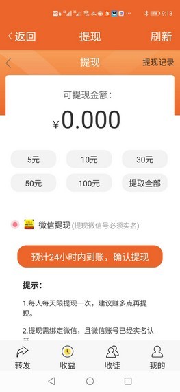 6.提取金币的要求非常容易达到,只用赚满一元就能操作了。