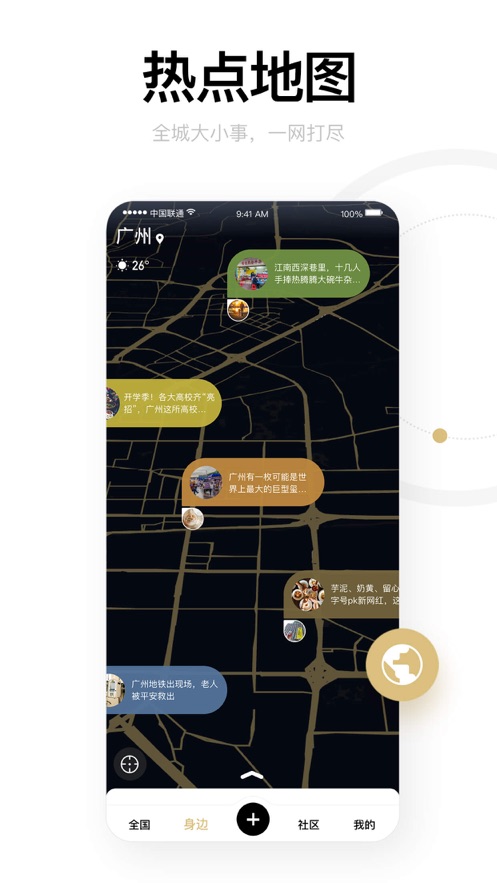 2.热点地图,随时随地发现你身边的重要新闻跟有趣的人;