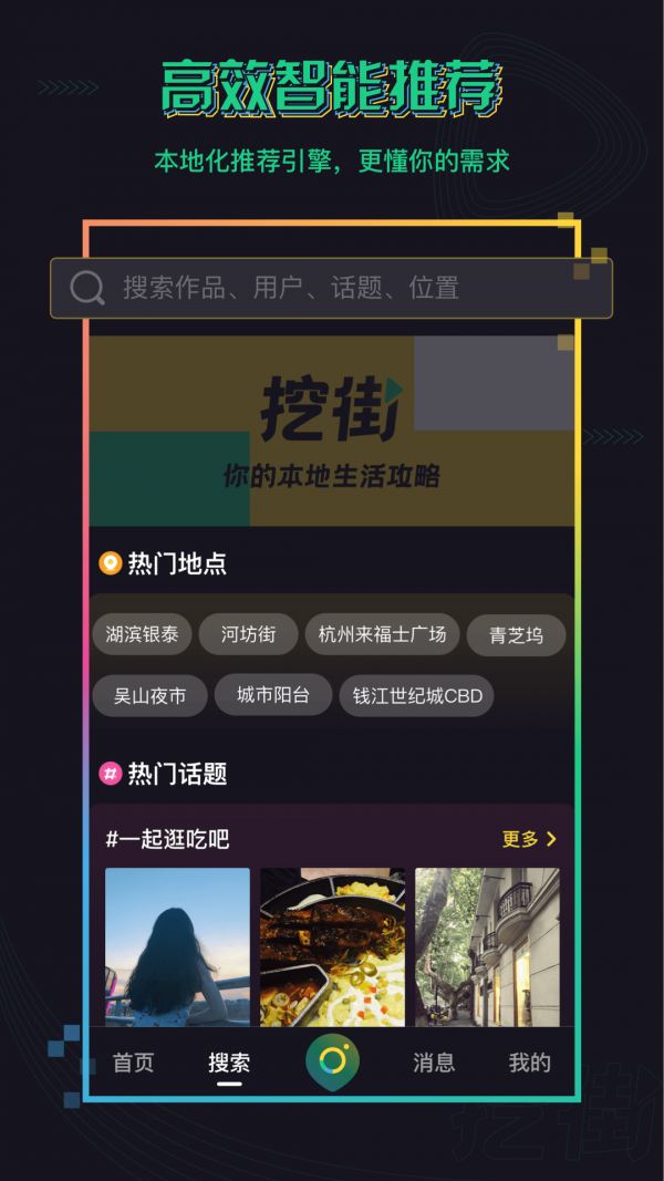 挖街app是基于地理位置的本地生活视频经验分享平台。