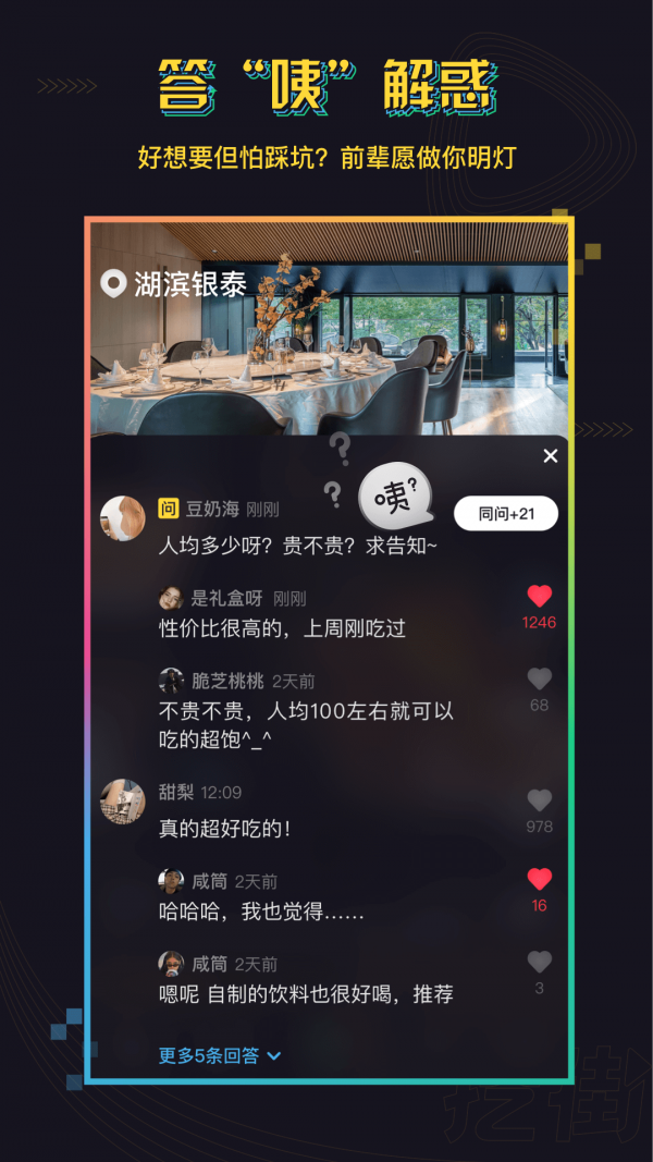 周围哪里在摆摊?哪个菜市场的菜今天最新鲜?哪家湘菜馆的小炒肉最好吃?SPA店有什么新活动?街角的酒吧气氛如何?专柜上了什么新?哪里有小哥哥在跳街舞?流浪猫们今天过得容易么...