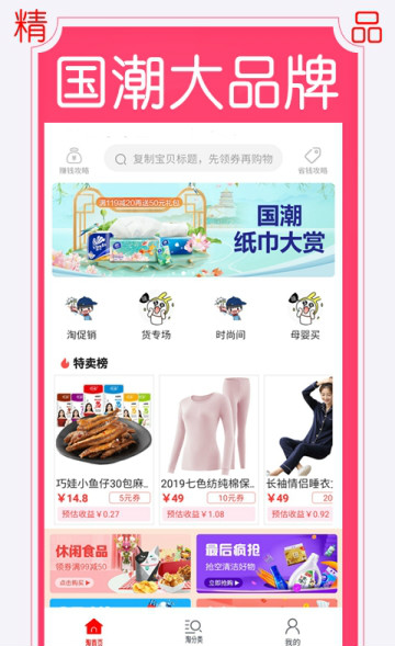 淘省淘官网app下载最新版一个只为帮你省钱线上购物平台,海量商品,超值优惠。来这里购物,只会帮你省。只懂得省钱的一种线上购物商城,不仅有海量的商品,还会为你提供海量的商品内部优惠券,让你领券购物,就是省超多哦!大家可以在这里先找优惠券在下单,可以省不少钱,也可以去9.9包邮专区、1元购专区看看有没有你需要的,真的超级划算,每次购物都会有一种物超所值的感觉,买到就是赚到!需要这款软件的朋友们赶紧来下载体验一下吧!