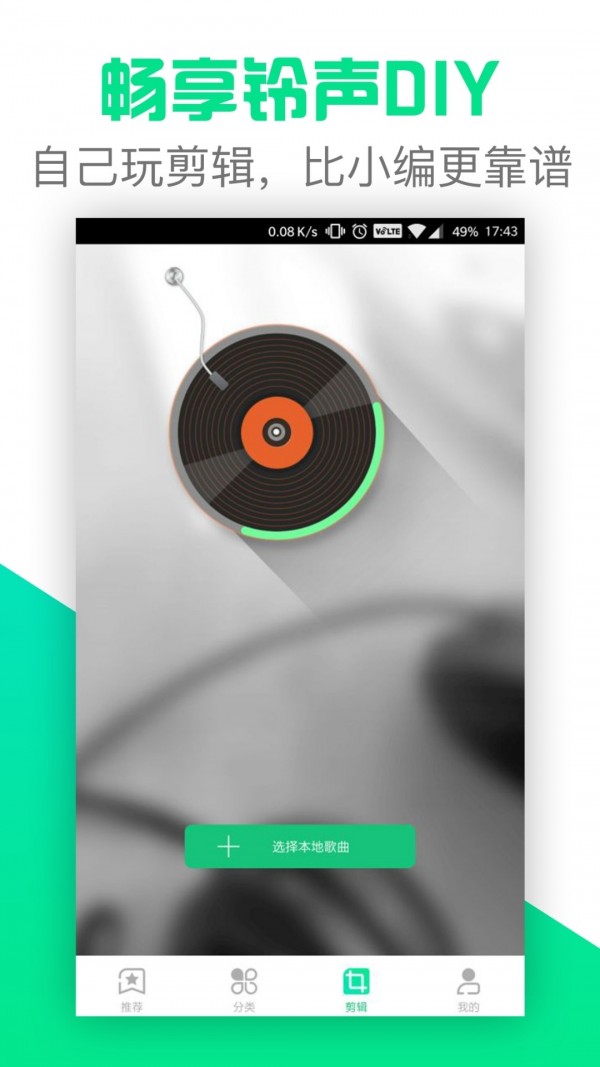 【个性铃声DIY】 自由截取本地歌曲作为你的铃声,让你的铃声与众不同!