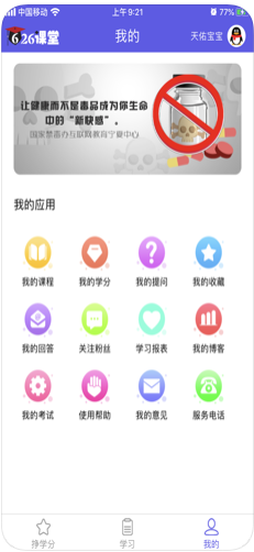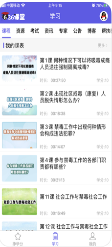 626课堂app是集宣传教育、课堂教学、评估监督、互动体验和移动应用为一体的综合性学校毒品预防教育软件。同时,将学校毒品预防教育工作纳入考核范畴,运用学习时长、考试成绩、注册率、考试参与率、素材发布率、校园禁毒活动数等量化指标精准评估各地禁毒办、学校落实禁毒教育的情况。天佑626课堂app是一款全新上线的帮助千千万万的莘莘学子更好的学习预防毒品知识的在线教育平台。平台上面有很多毒品的图片、名字、毒害等等各项参数信息。线上还有很多关于毒品的官方教学视频,帮助大家更正确的认识毒品、规避毒品。线上有视频教学课程、考试流程测试、还有线上可以请教专业的老师为你答疑解惑。
