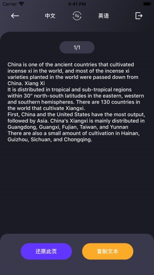 1、相机模式:对着文字进行拍照即可获取优质翻译(支持 37 种语言)