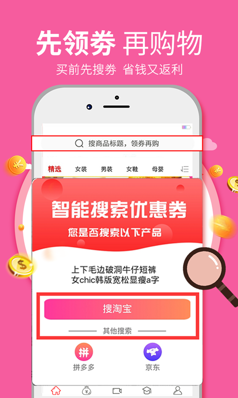 3、搜索关键词就能领取商品优惠券,帮助有需求的用户获得更多网购折扣。