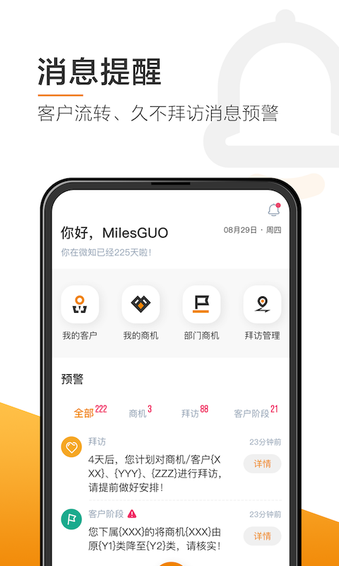 客户流转、拜访消息提前预警,菠萝秘书app非常智能。