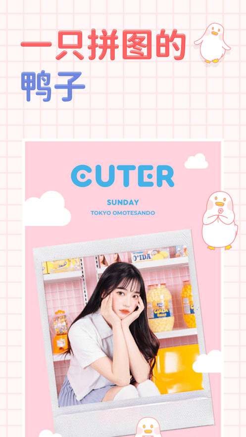 欢迎来到《拼图鸭》,这是一款以萌鸭博物馆为主题,专为百变美少女们打造的拼图滤镜app在这里,你的可盐可甜,盛世美颜都有我来守护鸭在这里,鸭鸭会定格你的美丽百变,给你最好的拼图体验因为精致可爱的你是值得拥有最好的鸭~