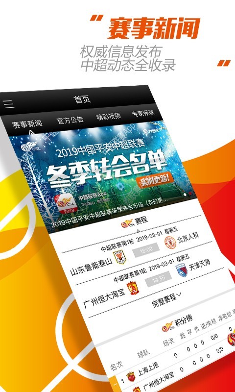 1、丰富的中超联赛赛事新闻,专业权威的第一手资讯报道,带给你最新赛事动态