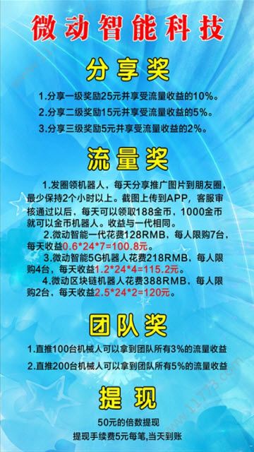 4.微动区块链机器人花费388RMB,每人限购2台,每天收益2.5*24*2=120元。