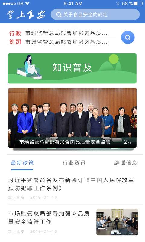 3.用户在这里还可以收到很多的食品资讯,让用户看看最新的食品安全政策和数据;