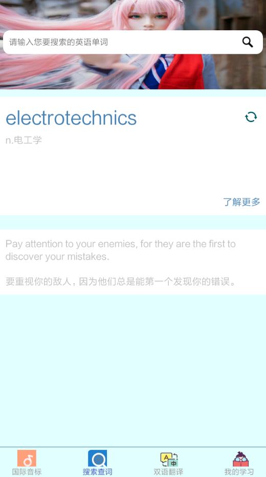 2.双语互译:集合中国多家翻译渠道,支持文本翻译,语音播放单词读音。