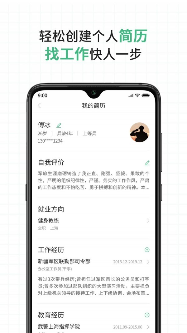 在线简历 简单几步创建个人移动简历,快速投递,轻松打动用人企业。
