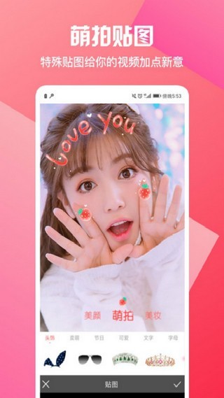 拍照工具上线了各种不同类型的贴纸,还有各种美颜特效;