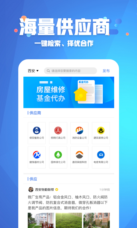 3、对于供应商,平台上的需求信息可以进行合作,对于物业后勤,可以在平台上根据供应商资质选择合作对象。
