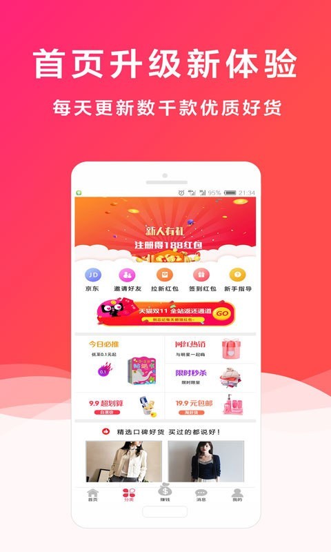 1、线上惊喜购物社区,网购价格实惠,优惠卷多多;