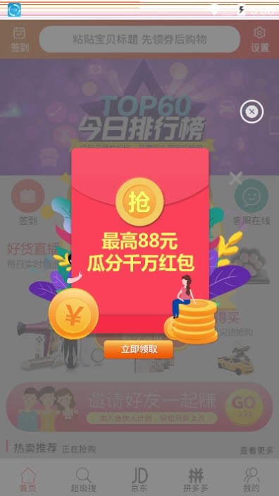 九块九包邮、折800等特价卖场! 会逐步引入多平台优惠信息,敬请期待! 本站提供手机版58淘优品下载