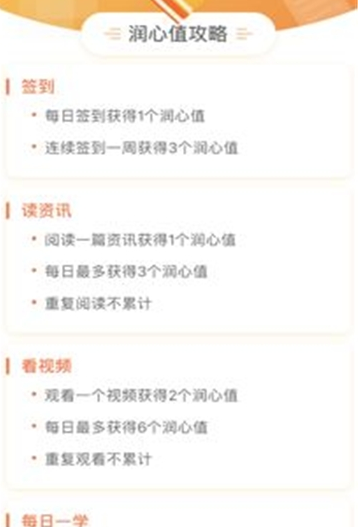 2、读资讯:阅读一篇资讯获得1个润心值,每日最多获得3个润心值,重复阅读不累计。