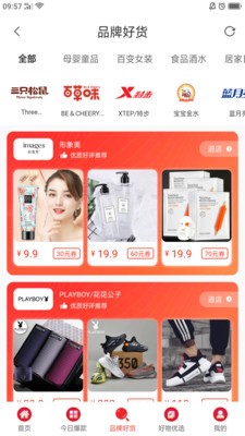 2、软件还为用户准备了热销排行榜、9.9包邮专区、品牌特卖商品等,带你买到质量好、价格低的好物