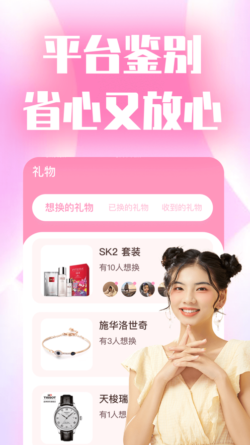 她礼是一款非常好用的手机线上交友软件,让用户们能够轻松的在这里交到朋友,这里汇集了非常多的用户,让你能够在这里轻松的交友,操作起来也非常的简单,还能够在这里购物以及出售商品,快来试试!这是款独特且非常新颖的交友工具,是采用交换礼物的方式去进行社交,每个人都可以在这里交换,每件商品也是有保障的,这样的独特社交,吸引很多猎奇心理的单身用户,大家一来一往的交流中,慢慢熟悉,让社交变得更加的有趣,一起来这里欢乐社交吧,超安全哟。