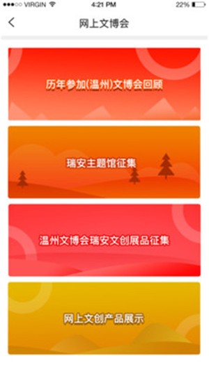 3、线上展示产品,即使自己没有到现场参加展览也能在此欣赏一个个的文化展品;