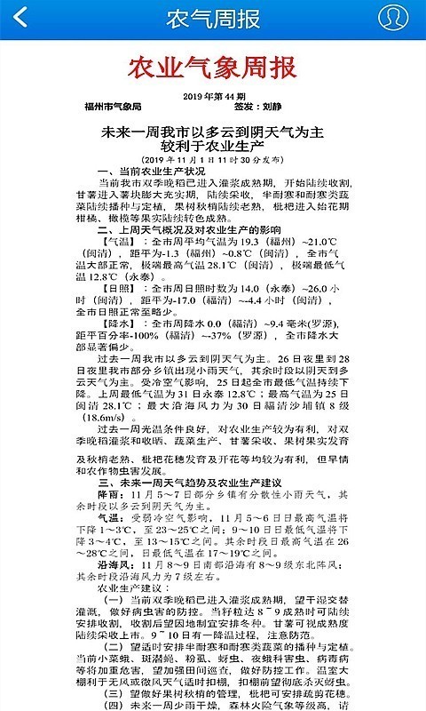用户可在农气宝app本模块查看各类专业的气象服务报告。