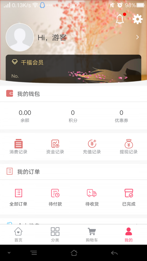 余额资产、积分数额、优惠券等都有详细统计,方便用户查询自己的资产余额数据;