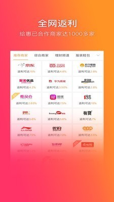 给惠网app是一款手机购物商城,网购返利首选站,为网民提供比价购物、购物返现金、优惠券、推荐奖现金、网购社区等服务,汇聚了众多成熟、活跃、忠诚、有影响力的网购用户。此应用中拥有大量的潮流优质商品,在平台上能够轻松对商品进行下单,一键就能轻松将商品带回家,非常方便;在这里提供有大量的电商平台入驻,所有的商品都是由厂家层层筛选提供,用户可以在平台上放心进行选购;系统还会进行分类,快速的选择到想要购买的商品,实时在平台上将订单生成,开始进行配送;而且一键就能将商品进行分享,分享还能赚到大量的现金奖励;购买商品时还能得到返现,让用户用超低的价格就能轻松购买的优质的商品,赶快下载试试吧!