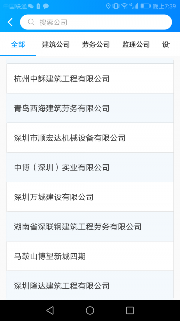 1.寻找公司信息,在此可以找到建筑公司、劳务公司和监理公司、设计公司等公司信息;