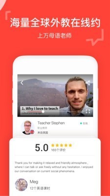 1.按价格、按国籍、按教学特长,多维度筛选过滤最适合您的老师。无论您是想练习对话技巧,纠正发音,了解文化或者系统地学习语言。