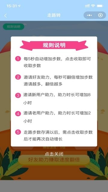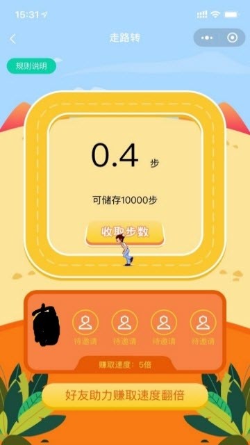 邀请好友助力,每秒可翻倍增加步数邀请越多,翻倍越多