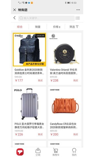 1、专注于爆款包包和国内大牌服饰类正品仓储批发及新零售的社交电商平台。