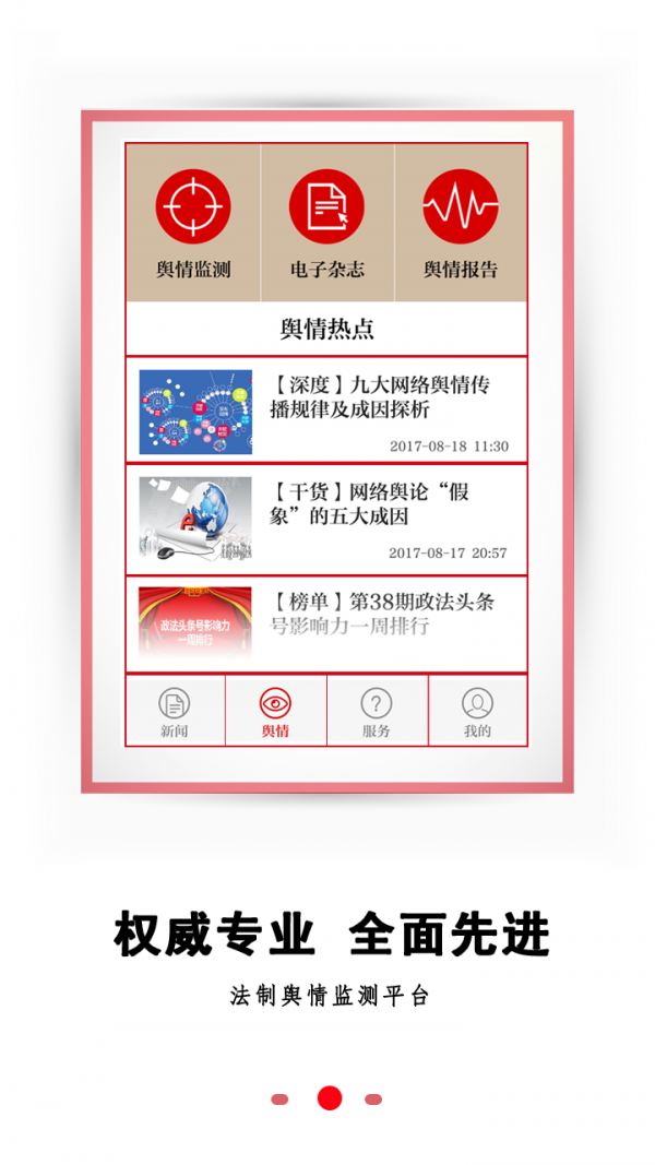 1、该应用主要由三大部分组成:法治新闻、法制舆情和法律服务。