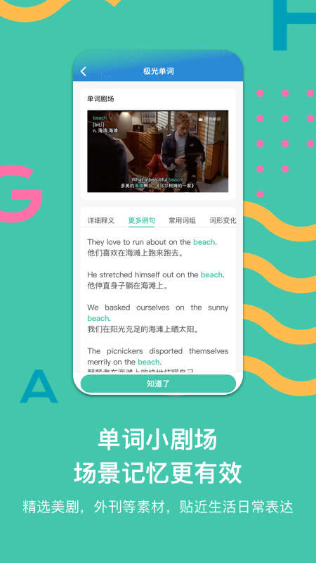3、影视原声,地道语料,趣学单词:精选《权力的游戏》、VOA、BBC、《经济学人》等经典美剧、外刊新闻数万原声例句,更有单词剧场助记;