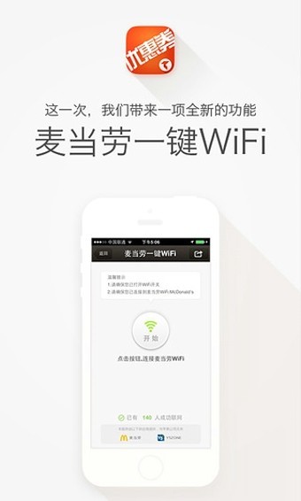 1、一键WiFi -- 手机一键连接麦当劳无线WiFi,免费上网